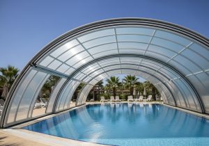 Độ dốc này tạo ra lực hấp dẫn tự nhiên, giúp nước mưa thoát đi một cách nhanh chóng, ngăn ngừa triệt để tình trạng ứ đọng nước tạo thành các vũng nhỏ trên mái. Việc thoát nước tốt không chỉ giúp giảm tải trọng tĩnh đè lên hệ khung mà còn mang lại hiệu ứng tự làm sạch (self-cleaning). Lực chảy của nước mưa sẽ cuốn trôi bụi bẩn, lá cây bám trên bề mặt, giúp mái che luôn giữ được độ trong trẻo và tối ưu hóa khả năng truyền sáng tự nhiên cho không gian bên dưới.